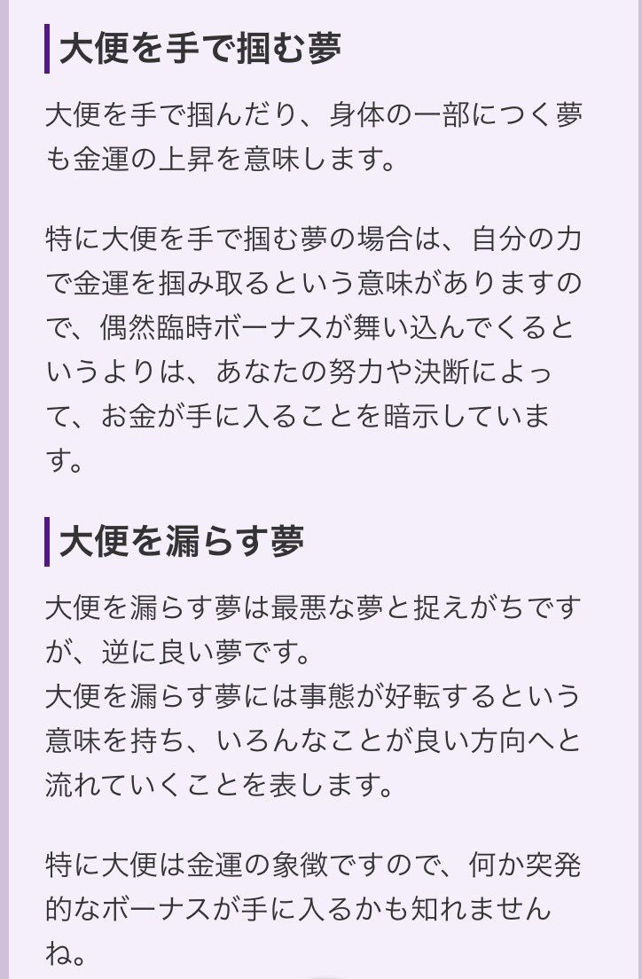 夢 占い夢 大便夢 漏らす夢 夢占い】うんこを漏らす夢を見ると宝くじ当たるって本当?「宝くじ当たった」という実体験も紹介!夢 |夢 運気が上がる幸運メディア夢 夢占い】うんこを漏らす夢を見ると宝くじ当たるって本当?「宝くじ当たった」という実体験も紹介!夢 |夢 運気が上がる幸運メディア夢 AV男優夢 大島丈夢 on夢 Twitter:夢 "さて。夢 今朝見た夢の話をするね夢 実は今朝うんちを漏らしました(夢…ね)夢 うがーっ!!夢 最悪だ〜!!